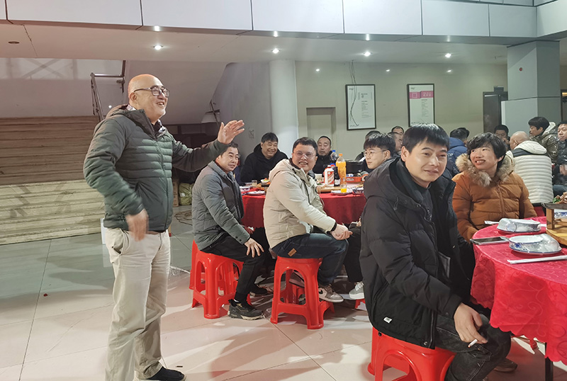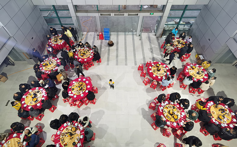 当晚,旧办公楼大厅都摆放了红色的大圆桌,桌上摆满了丰盛的菜肴,大家围坐在一起,欢声笑语不断。这顿年夜饭不仅是一次简单的聚餐,更是一场充满回忆与温情的聚会。每一位员工及其家人们都感受到了公司对他们的关心与感谢。