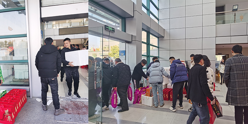 在丰盛的年夜饭开席之前,公司为每位员工家人准备了一份丰厚的新年年货,一如往年,分量十足,包括米油组合、坚果礼盒、车厘子和橙子。这些精心挑选的礼物,既实用又贴心,表达了公司对员工们的祝福与关怀。当员工们领取到自己的年货时,脸上洋溢着激动与开心的笑容,纷纷拍照留念,记录下这一难忘的时刻。
